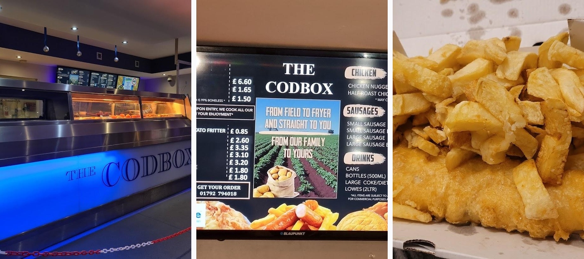 Discover THE CODBOX in Morriston, Swansea, where delicious fish and chips meet unbeatable prices! Enjoy our crispy batter, flavorful rissoles, and generous portion sizes, perfect for takeaway. Visit us for a taste of local favorites - curry included! Call us at +44 1792 794018 and see why our customers love the queue for great food!