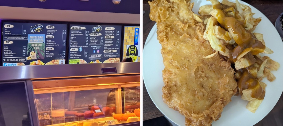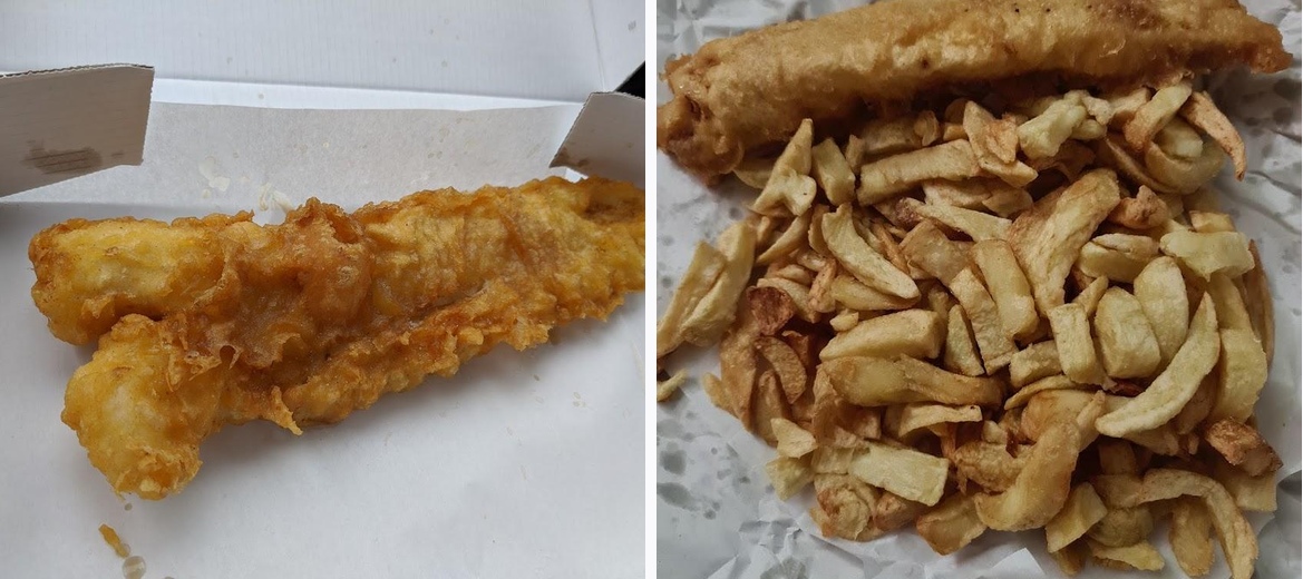 Lovely young lady serving, i ordered fish & chips & pie & chips. Big potions of chips, fish was delicious, great service lovely food & reasonably priced. Would highly recommend x